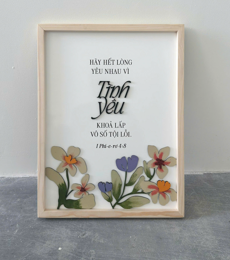 [Faith works] Tranh gỗ Câu gốc Tình yêu khoả lấp tội lỗi I Phi-E-Rơ 4:8 | Joshua chữ nhật 30x40Cm