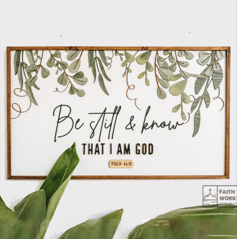 [Faithworks] Tranh gỗ Câu gốc Jungle vines - Be still, and know that I am God.' Psalms 46:10 - 30x40Cm